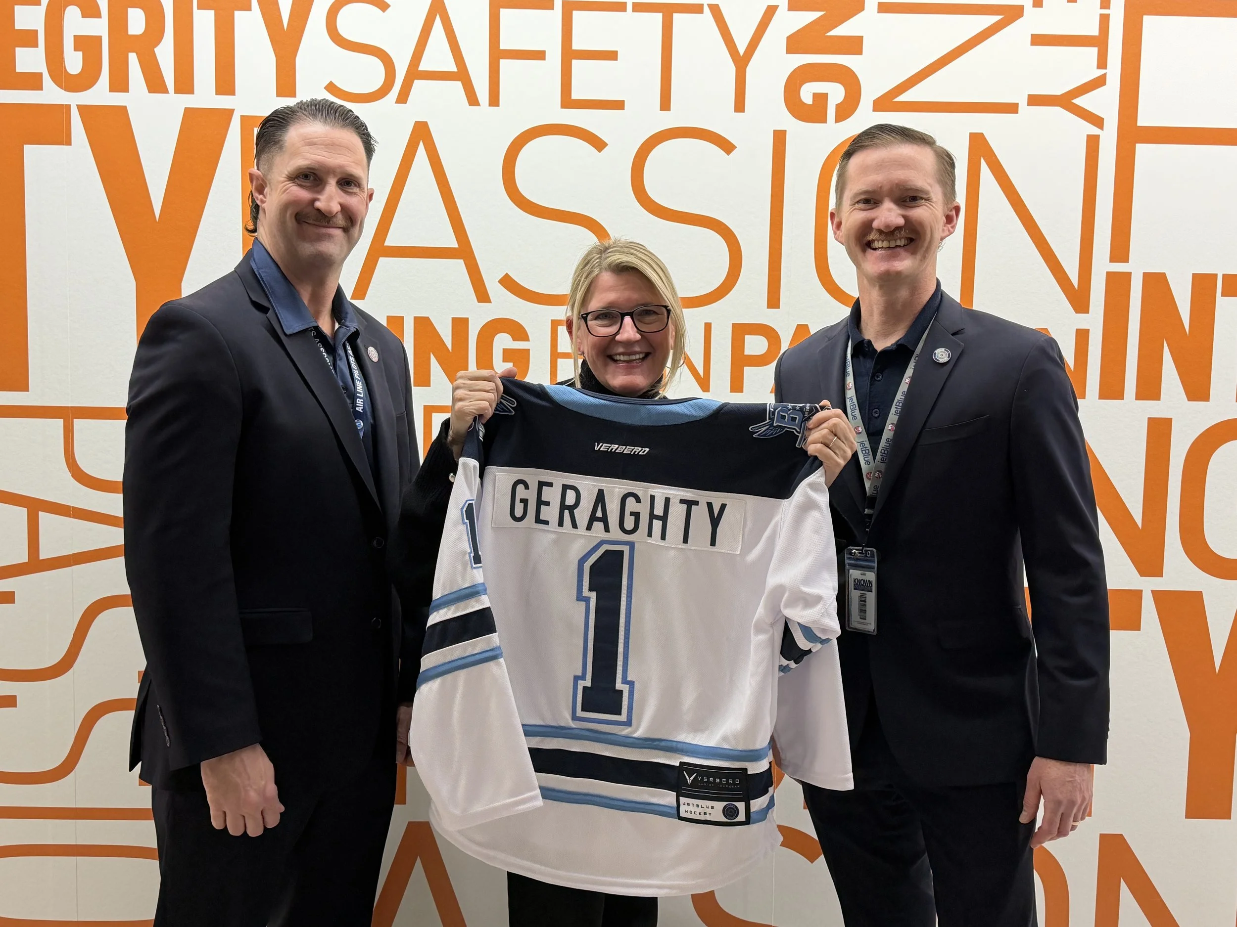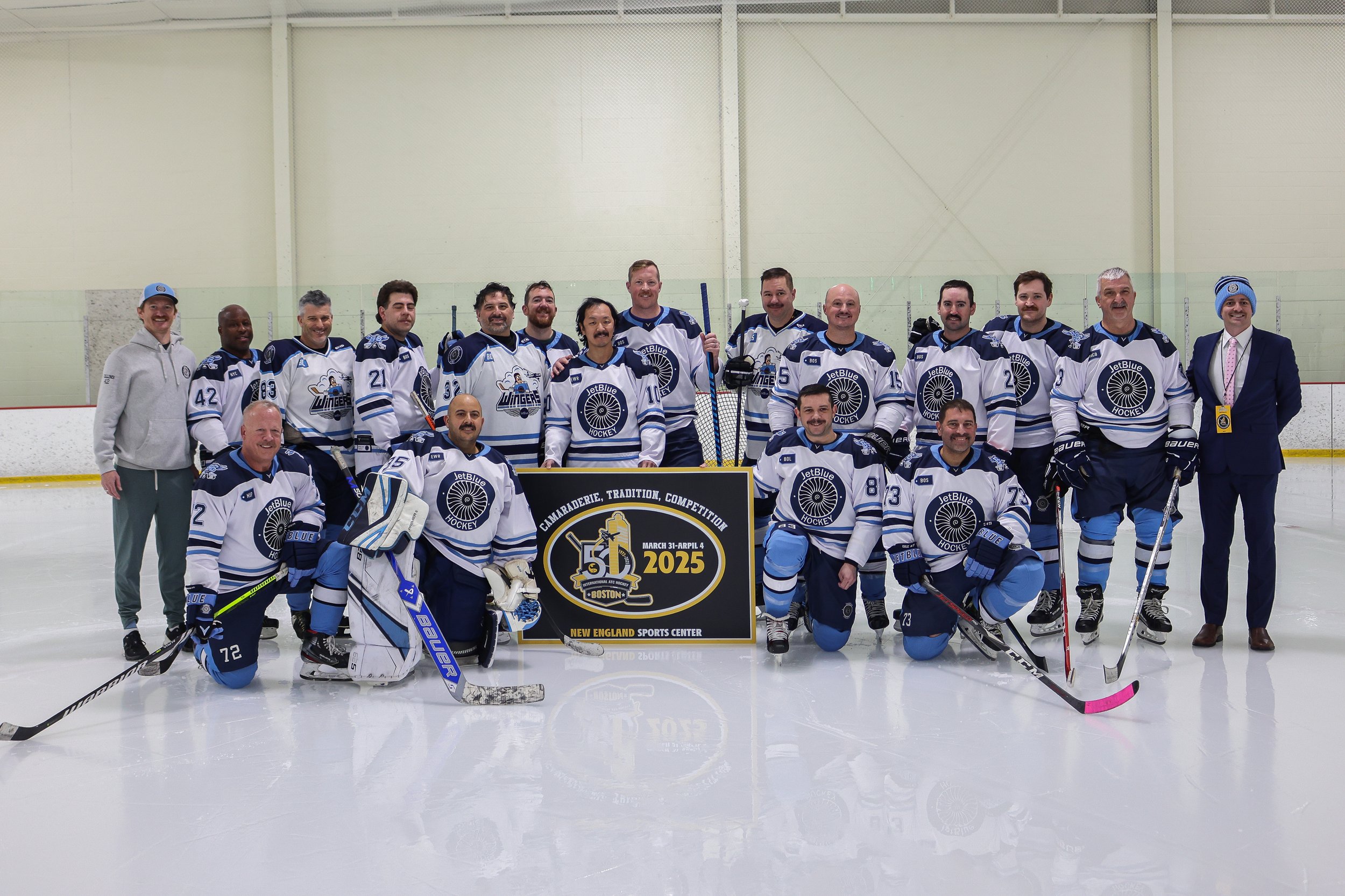 The JetBlue Hockey Club took flight in 2019, fueled by the shared dream of Captains Nolan Collins, Robin Staveley, and Thomas Murphy. From a small band of passionate skaters in Winthrop, MA, we've soared to over 130 JetBlue crewmembers, united by our love of hockey and proudly sporting the JetBlue Hockey logo.